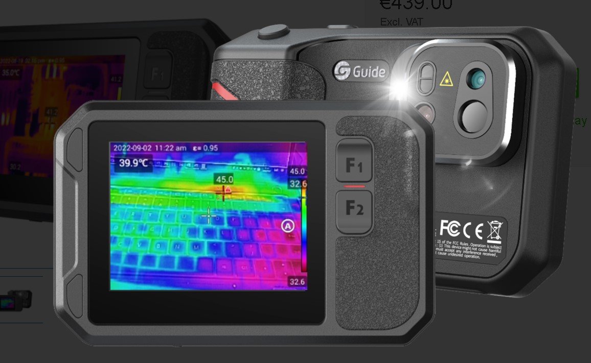 The Guide IR PF210 is a pocket-sized thermal camera with a 256 x 192 pixels infrared detector and a -20 °C to 550 °C temperature range. Morever, the thermal camera is a non-contact inspection tool which makes it great for finding hidden deficiencies of electrial equipment in a safe manner. Furthermore, the PF210 has a laser pointer and a laser rangefinder which provides an accurate range-to-target up to 8 metres and intelligent area calculation of a rectange object. Appealing features of the PF210 are a 3.5" LCD touchscreen, a 4 hour battery life, and a built-in Wi-Fi function which allows users to share information quickly and easily. Finally, the thermal camera has an IP54 rating which means that it is protected from water sprays from all directions and against contamination from dust and other particles.